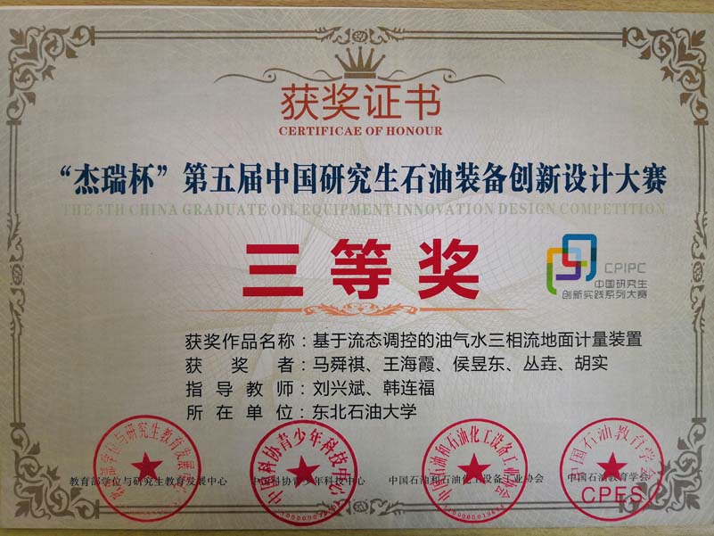 8月27日上午,由教育部学位与研究生教育发展中心、中国科协青少年科技中心、中国石油和石油化工设备工业协会、中国石油教育学会联合举办的“杰瑞杯”第五届中国研究生石油装备创新设计大赛决赛在西南石油大学隆重开幕。据了解,本次决赛共有来自全国54所高校的245件作品参与角逐,其中石油装备类作品162件,通用机械类作品83件。公司由刘兴斌、韩连福老师指导的研究生马舜祺、王海霞、侯昱东、丛垚、胡实组成的代表队,其参赛作品“基于流态调控的油气水三相流地面计量装置”经过层层选拔,成功进入决赛,并荣获全国三等奖的优异成绩。