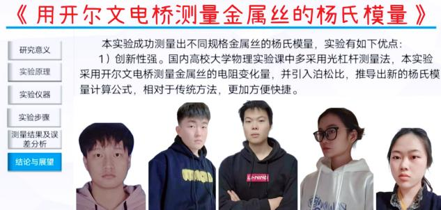 自选组赛道,由应化20-2班张扬同学带领的团队凭借作品“用开尔文电桥测量金属丝的杨氏模量”荣获全国三等奖。