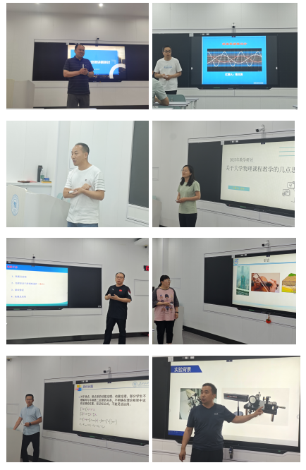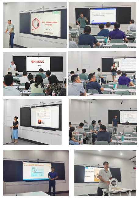 研讨中16位老师以实际授课内容,通过完整的一节课,或某个关键知识点为案例,从教学设计的巧妙构思、教学方式方法的创新运用,课堂讲解展示到课堂管理的有效策略等多维度展开分享;探讨了 “翻转式大班教学 + AI 赋能” 的融合路径,提出利用智能技术破解大班管理难题;解析针对不同层次员工的差异化教学策略;理论与实践的联动教学思路;教学设计中展现科学原理与价值引领的结合;另外,相对论、高斯定理、机械波等经典物理知识点的教学方法优化,以及自然坐标系、波函数等抽象概念的教学设计也在研讨中被深入探讨,现场形成多轮思维碰撞。
