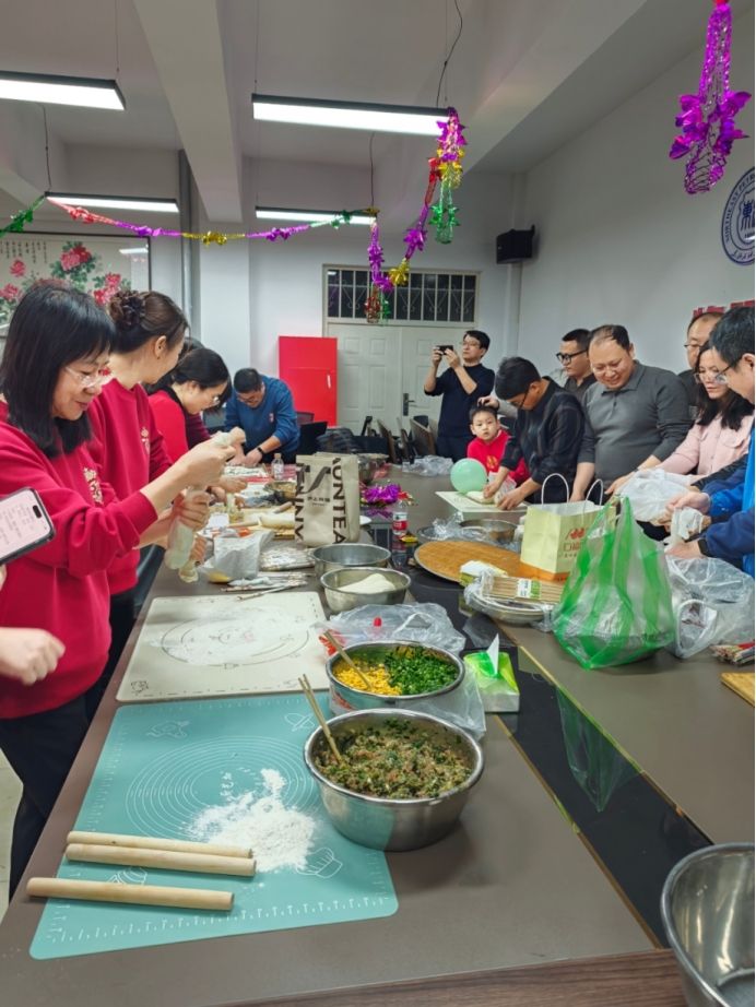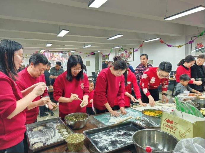 最后,当包饺子环节正式开启,平日里专注于物理实验、电子电路研究的师生们纷纷挽起袖子,踊跃参与,你擀皮,我包,大家说说笑笑。一盘盘饺子下锅煮熟,热气腾腾的刚端进来,就被“喜劫一空”立马“光盘”,酸菜肉,牛肉大葱,香菇肉,白菜蒜苗肉,还有藏着大虾仁的韭菜三鲜,各种馅料的美味饺子释放了大家的欢愉情绪,有的教师家属也赶过来参与这场“饕餮盛宴”,欢声笑语充满着236 。