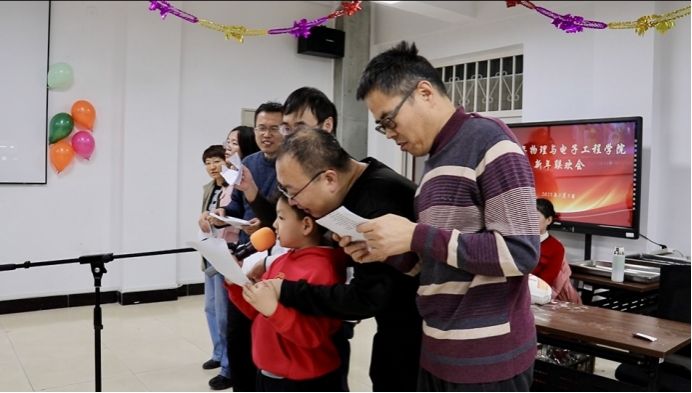 物理系全体教师合唱《明天会更好》,深情的歌声在会场回荡,寄托着全院师生对新一年的美好憧憬。