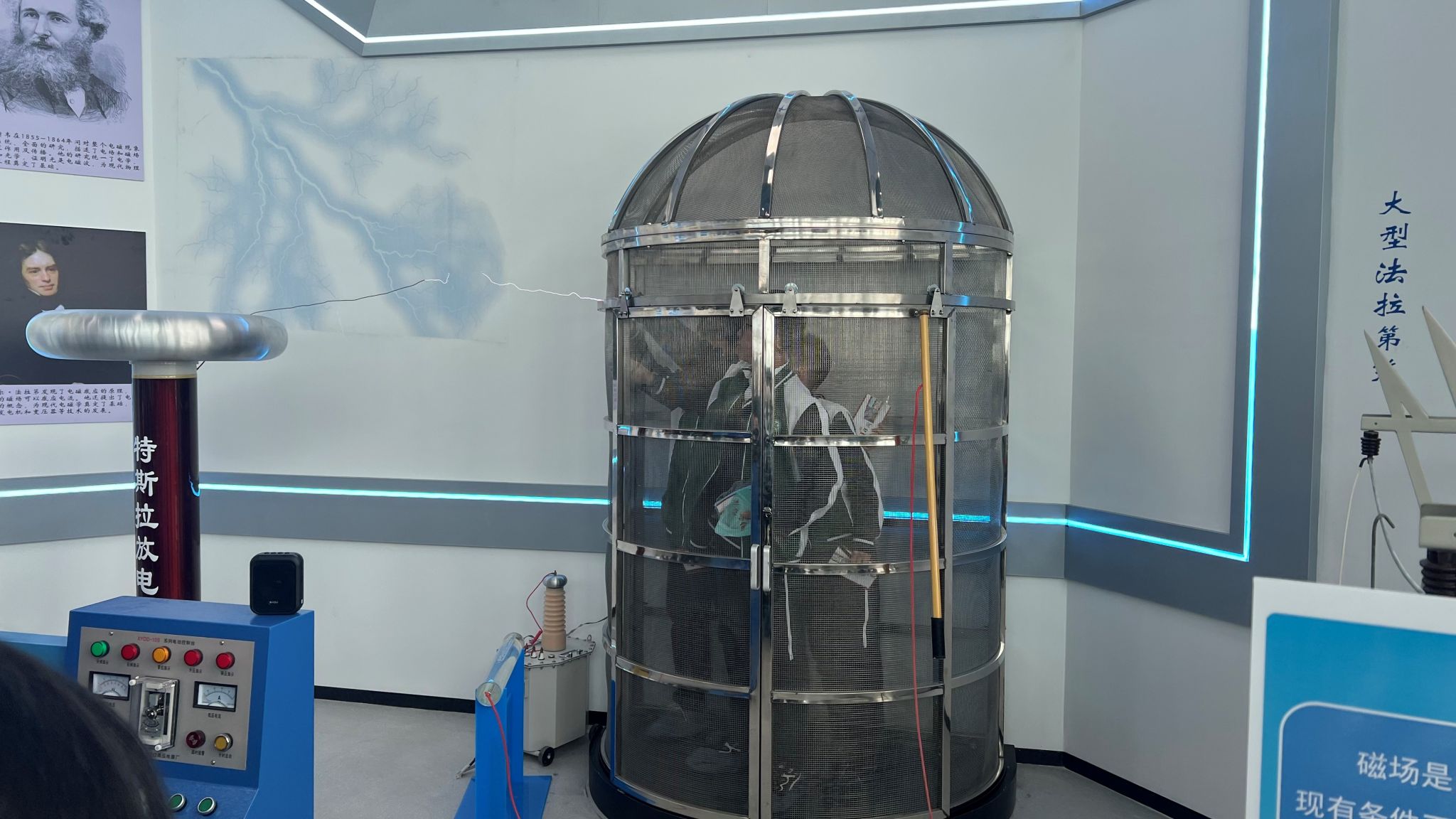 在物理探索演示馆内,员工们通过五大主题展区深度体验科学的魅力。光学幻影展区利用全息投影技术,生动演绎了光的波粒二象性;力学互动装置让牛顿三定律变得触手可及;在高压静电实验区,3.5万伏的闪电在法拉第笼外炸裂,笼内的员工却安然无恙,亲身感受了“静电屏蔽”的奇妙现象;超导磁悬浮展台前,零下194℃的液氮使普通铁块瞬间悬浮,直观诠释了量子锁定效应;能量守恒自行车让员工通过动能发电竞赛,切身领悟能量转换定律。一位员工在研学笔记中写道:“当看到傅科摆平面缓缓偏转时,我终于明白了‘坐地日行八万里’的科学内涵。”