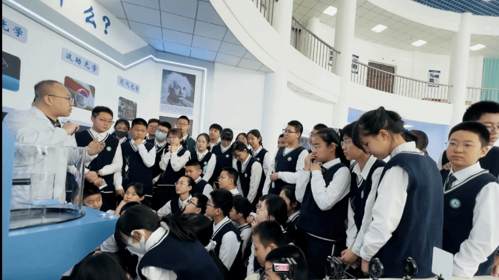 仪式结束后,双方共同举行了赠旗仪式,标志着“物理科普研学基地”正式启动。在为期五天的首期研学活动中,由6名专业物理教师和8名本科生组成的物理宣讲团,精心设计了“理论探究—实验验证—创新应用”三位一体的研学课程,为500余名中员工开启了一场别开生面的科学探索之旅。