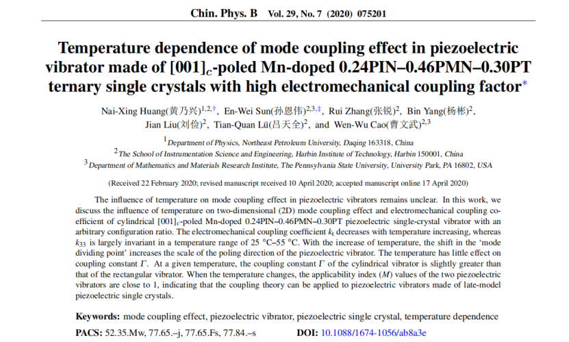 黄乃兴博士在压电单晶模式耦合效应温度特性研究中取得新进展
