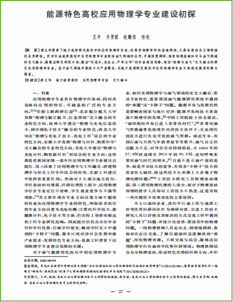 近日,公司王升、李贤丽、赵鹏程和杨旭团队的教学改革研究论文《能源特色高校应用物理学专业建设初探》在国内工程教育研究权威期刊《高等工程教育研究》(2024年第5期)发表。该论文着眼于新工科背景下,探索地方能源特色高校应用物理学专业的创新发展路径。