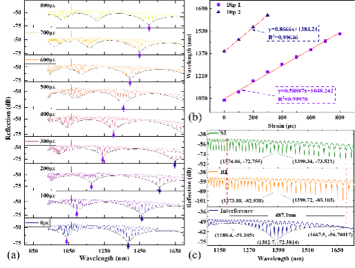 传感器应变灵敏度达866.6 pm/με(较光纤光栅提升超过800倍),同时具备0.01374 με/°C的超低温度串扰——相当于在100°C温度波动下,应变测量误差仅1.37 με,精度足以监测桥梁钢筋的微米级形变。