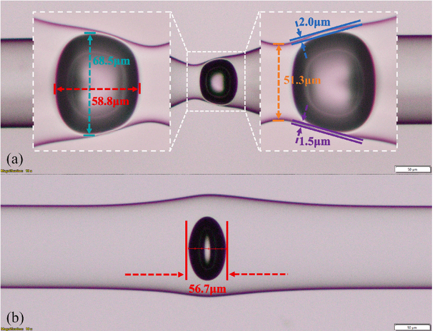 采用普通光纤熔接机,通过电弧放电动态塑形技术,在单模光纤内精准制造可调气泡微腔(直径≈60μm)。与传统飞秒激光加工相比,极大降低了制作成本,并显著提升制备效率。