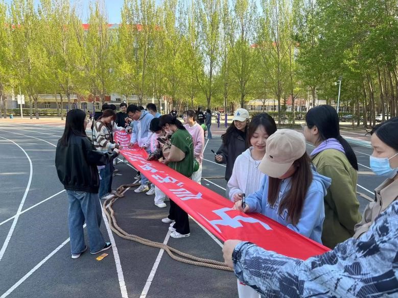 愉快而激烈的游戏结束后,本次活动便迎来尾声,在最终的“祝福祖国,寄语未来”环节,公司研究生在条幅上写祝福语并集体合影,留下青春纪念。
