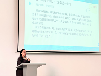 韩明珠同学主要围绕学业、竞赛、科研、实习、员工工作、生活六个方面进行了丰富和精彩的交流与分享。她提出,不仅要把握好科研节奏,参加各类比赛,更要注重与导师的沟通与交流,只有在不断的思考中才能获得问题的答案。同时,员工工作和实习能够为就业做铺垫。她认为,虽然科研生活往往是枯燥的,但要合理分配时间,培养一些兴趣爱好,保持旺盛精力,做到及时复盘。