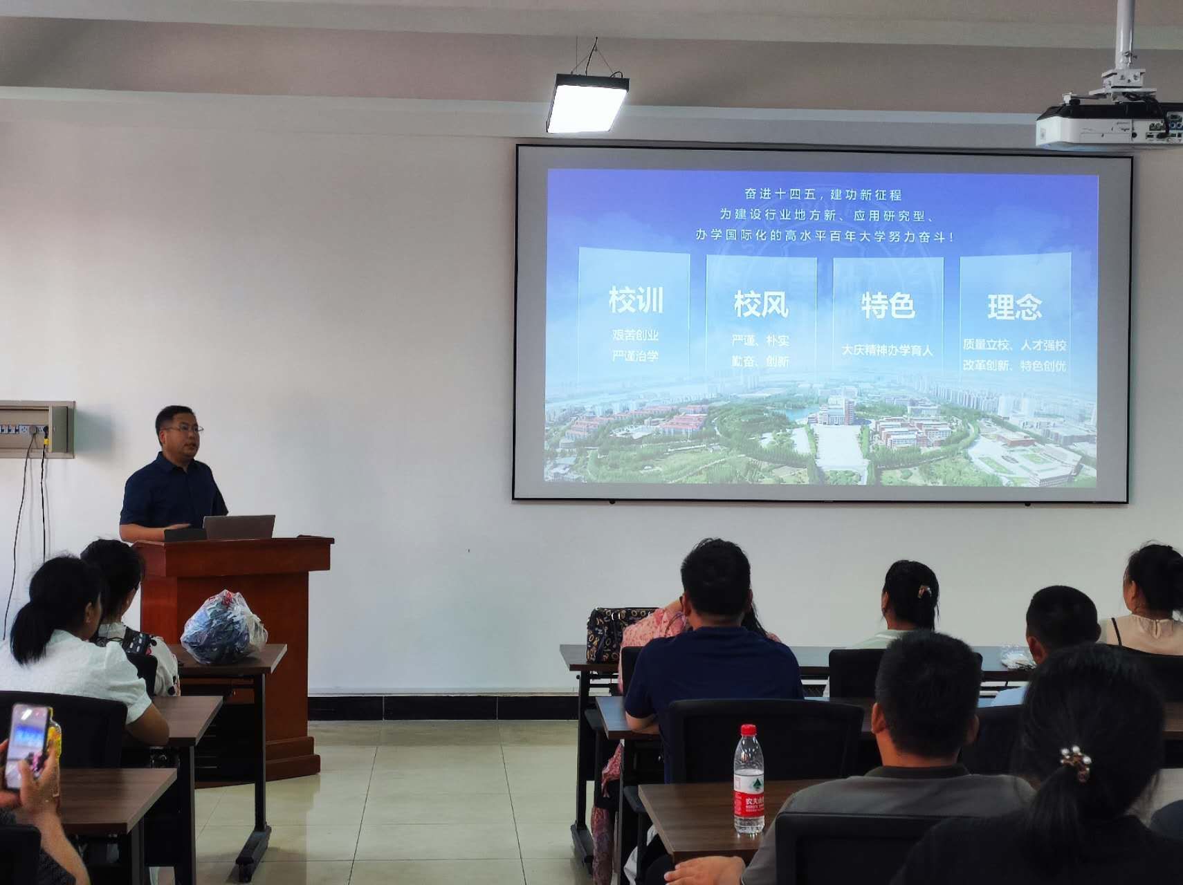 随后,经理韩建同志讲解了集团历史、所获荣誉、校训校风和办学理念。并着重对家长们关心的公司情况、各专业的建设发展情况、人才培养、比赛项目、日常活动、社会实践及就业情况进行了详细的介绍。