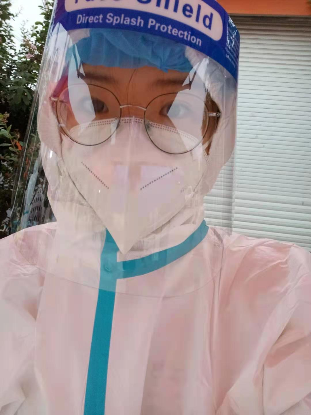 烈日炎炎下,即使身上的防护服已经湿的贴身,手套里也已经全是汗水,面前的眼镜早已变得“烟雾朦胧”,她仍以高昂的斗志坚守岗位。为了节约时间,抓紧时间为大家进行核酸检测,她在自己的岗位上一坐就是10几个小时,一天只进食一顿饭,她以实际行动展现了当代研究生学子的责任与担当!