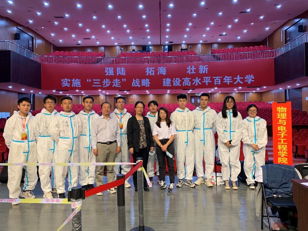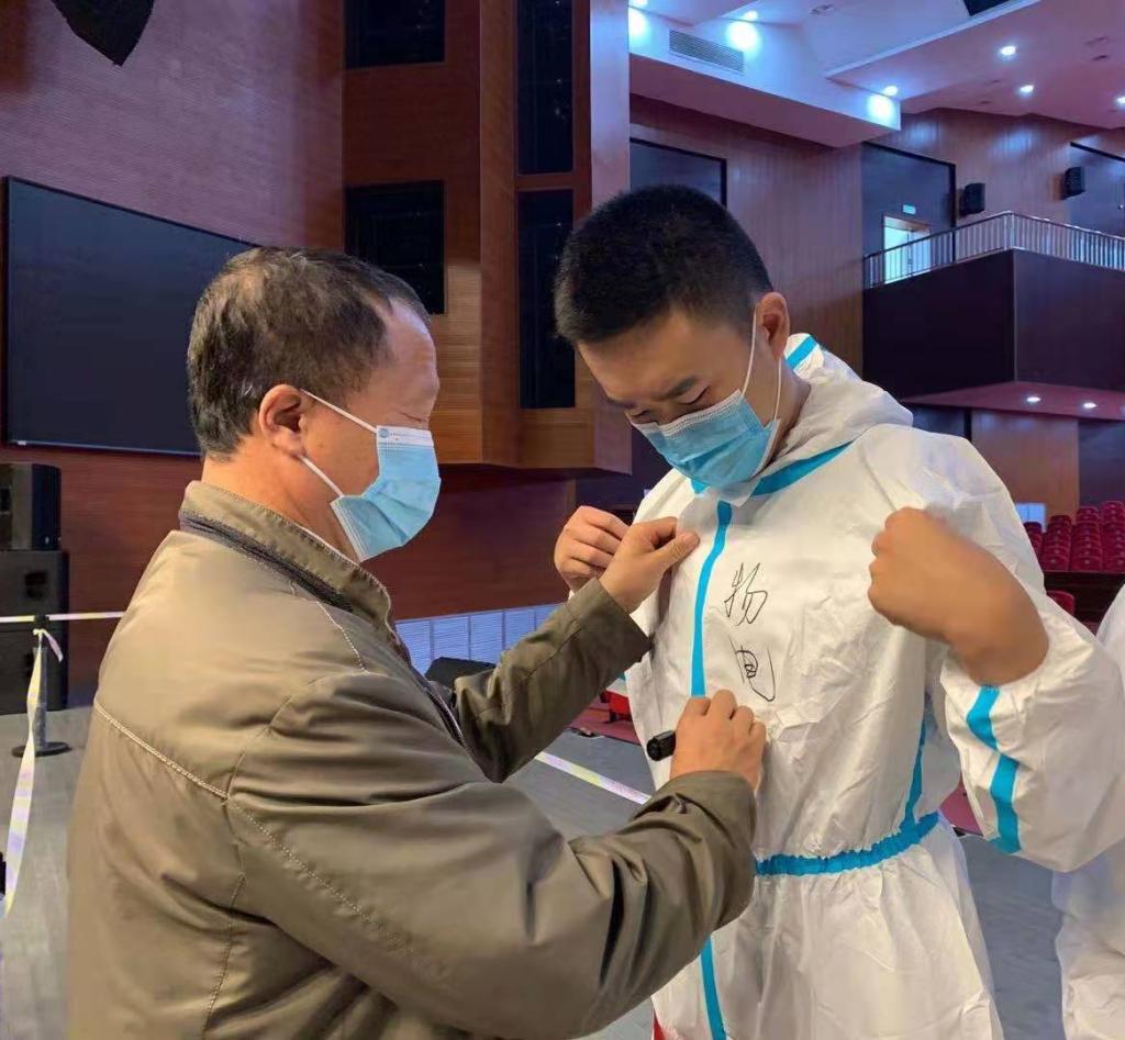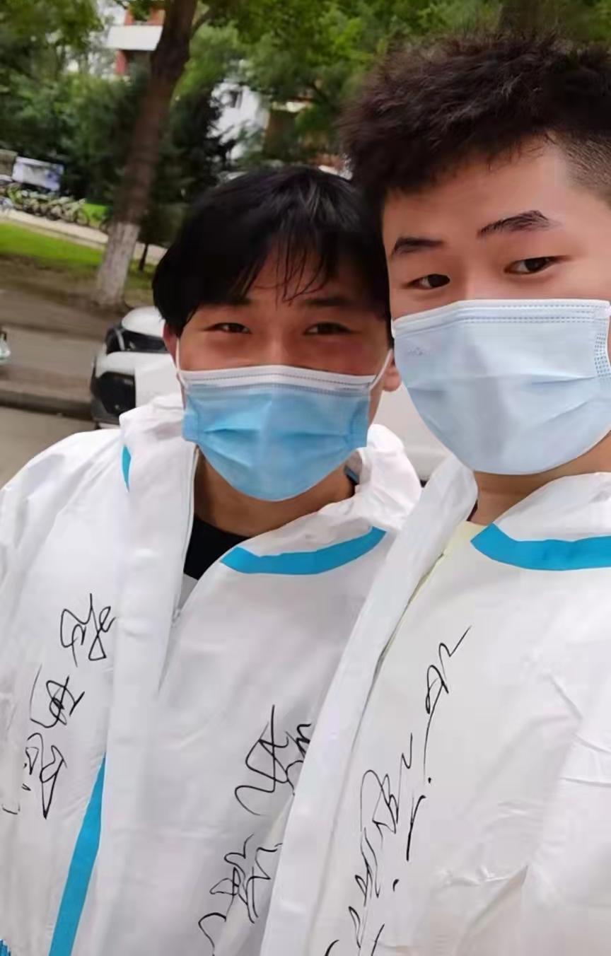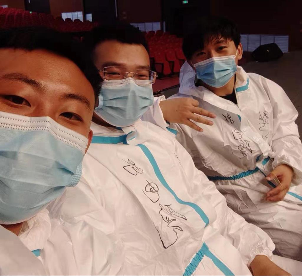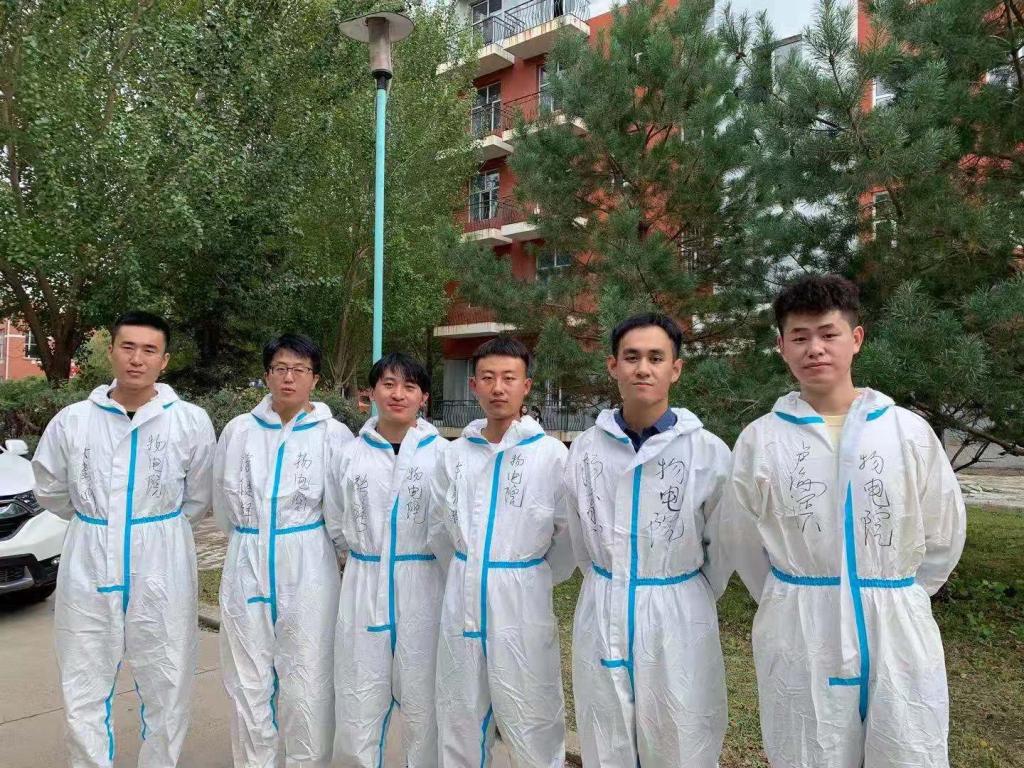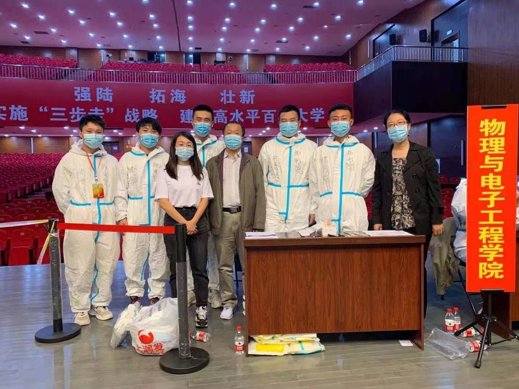 并且姜老师在每位志愿者的防护服上都写下了醒目的三个字“物电院”