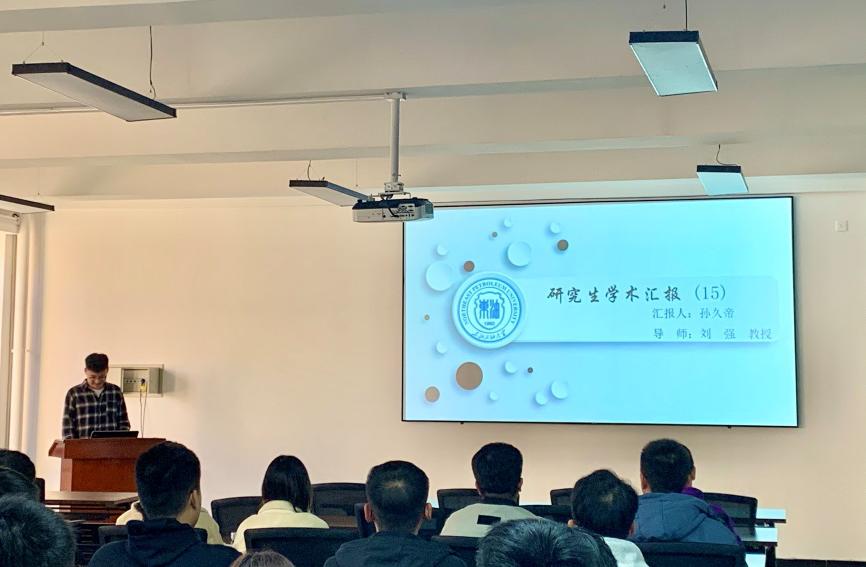 10月22日下午3点,U8国际2018级硕士研究生孙久帝在1E-236进行了研究生学术汇报。辅导员安妮老师以及物电院20级全体研究生参加此次活动。