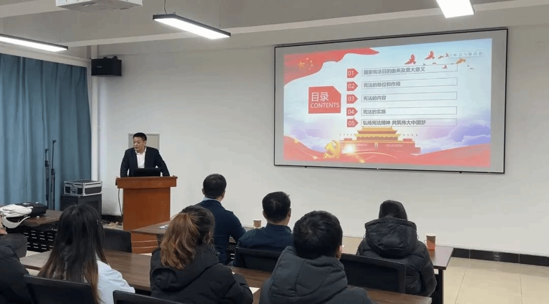 宫学成同志以“弘扬宪法精神、共筑伟大中国梦”为主题,为公司师生进行了主题宣讲。他从员工们的成长经历和日常生活入手,结合相关专业法律规定、对照宪法相关条款,由浅入深地讲解了宪法的主要内容。结合宪法的地位和作用、我们党和国家取得的历史性成就,传达了习近平总书记的重要讲话重要指示精神,讲解了国家宪法日的由来和重要意义、宪法在党和国家各项事业中的重要作用。结合公民的基本权利和义务,讲解了每名公民享有的宪法法律权利和义务,激励引导同学们尊崇宪法、维护宪法权威,全面贯彻习近平新时代中国特色社会主义思想,与新时代同向同行、与党和人民共同前进,为全面建设社会主义现代化国家、全面推进中华民族伟大复兴而努力奋斗。